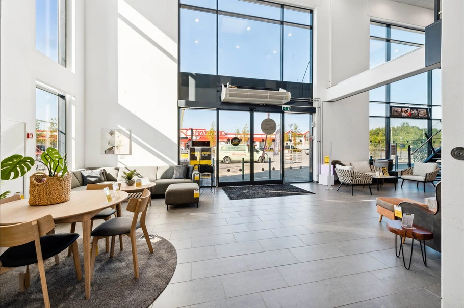 Lejemålet er på i alt 958 m² og består af et stor showroom/butik på ca. 750 kvm, samt et varelager i gavlen mod Egespurs Alle på små 200 m². Der er endvidere et fælles indgangsparti med Sengekompagniet og Ilva hvor der også er mulighed for udstilling og afskiltning. Synligheden er stor både fra Egespurs Alle der fører mod Hillerød motorvejen, samt Herredsvejen der er den store indfaldsvej i Hillerød.
