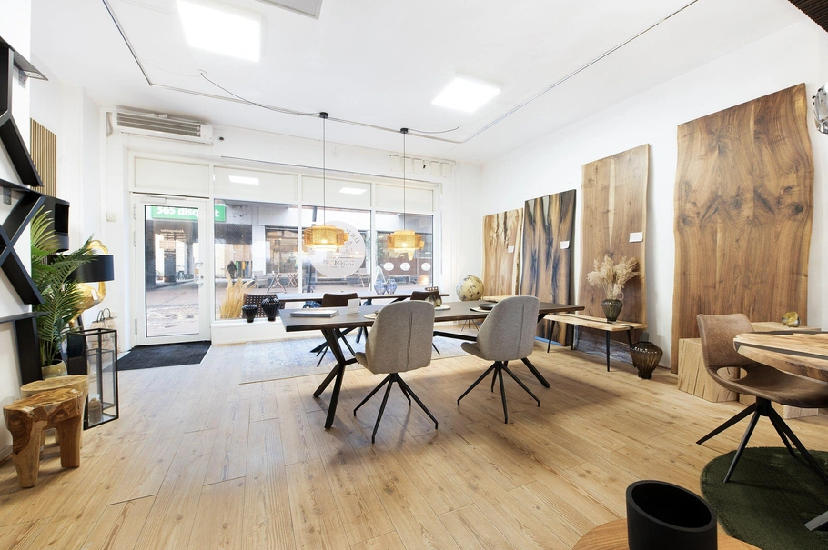 Lejemålet er på 93 m² flot lyst butikslokale med trægulve og med direkte adgang til 66 m² høj lys kælder til lagervarer.