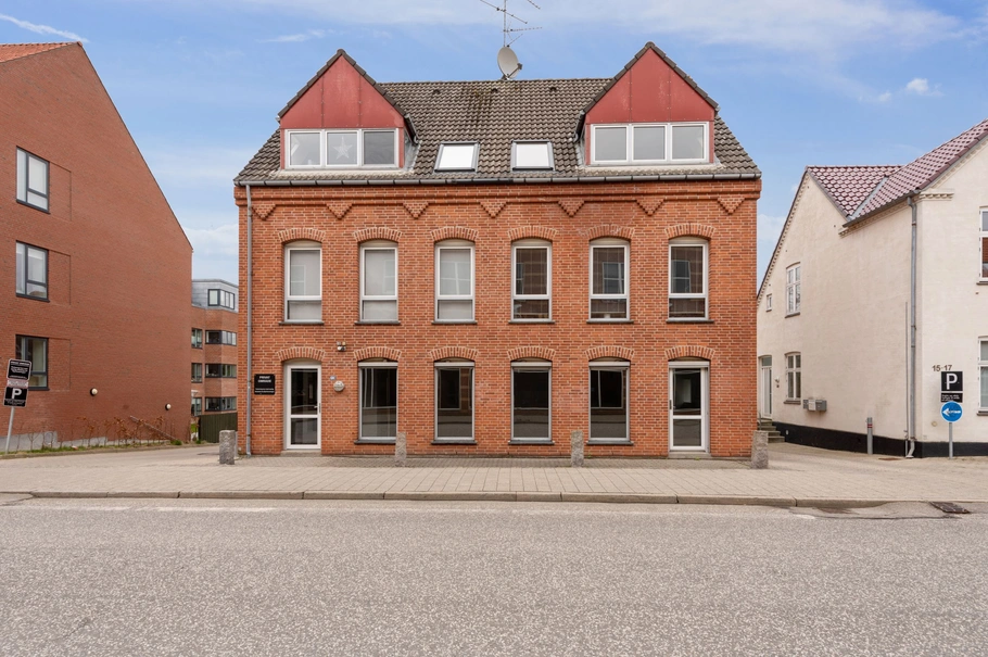 Ejendommen fremstår pæn og indflytningsklar. Du bliver en del af en god ejerforening, og den flotte rødstensbygning tager sig nydelig ud med sine stik over vinduerne og gesims under taget. Herude er der god plads til at sætte et skilt op - eller måske vil du indrette med bænk og planter?