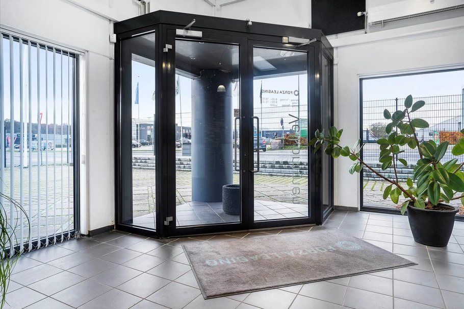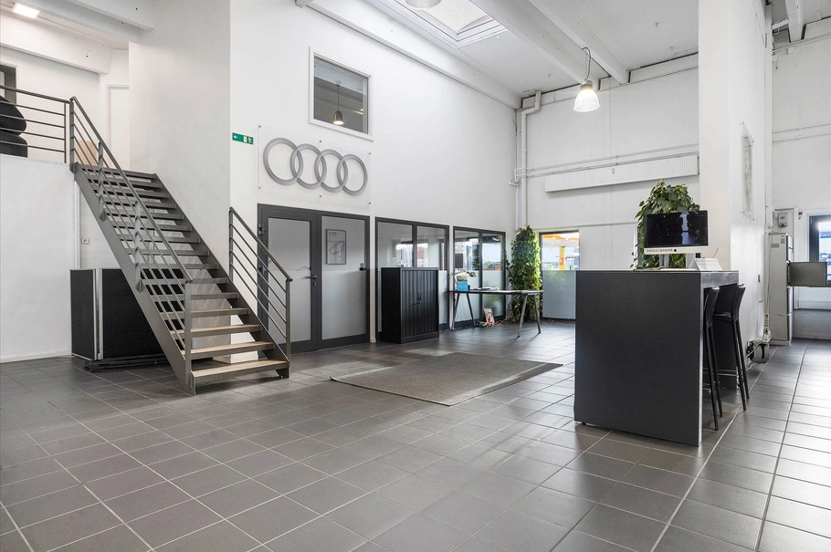 Ejendommens arkitektur og layout er designet med tanke på funktionalitet og professionel præsentation. Den rummelige bygning tilbyder et alsidigt rum, der kan tilpasses forskellige erhvervsformål. Facaden udstråler professionalisme og indbyder til en positiv arbejdsatmosfære. Der er ud over de store showroom, det nuværende værksted med 4 meter port, og kontordelen også nogen gode indskudte dæk med køkken og spiserum, samt mødelokale og kontorer.