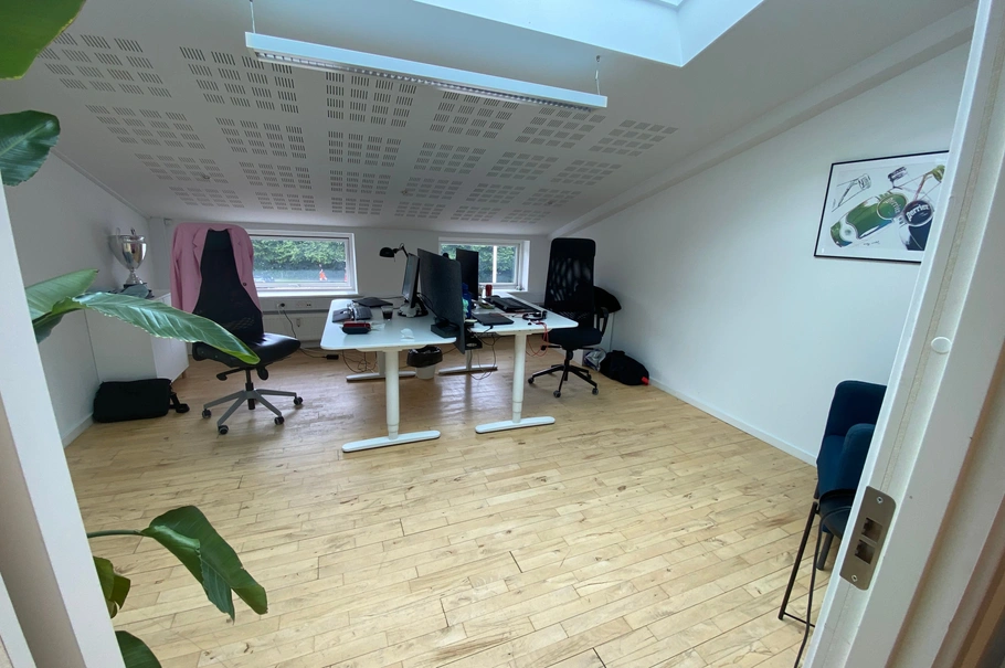 - Indrettet med stort kontormiljø, to kontorer/mødelokaler samt en frokoststue.