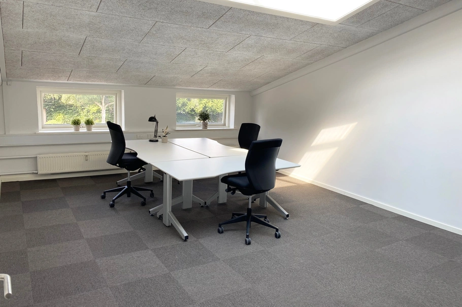 - Indrettet med stort kontormiljø, to kontorer/mødelokaler samt en frokoststue.