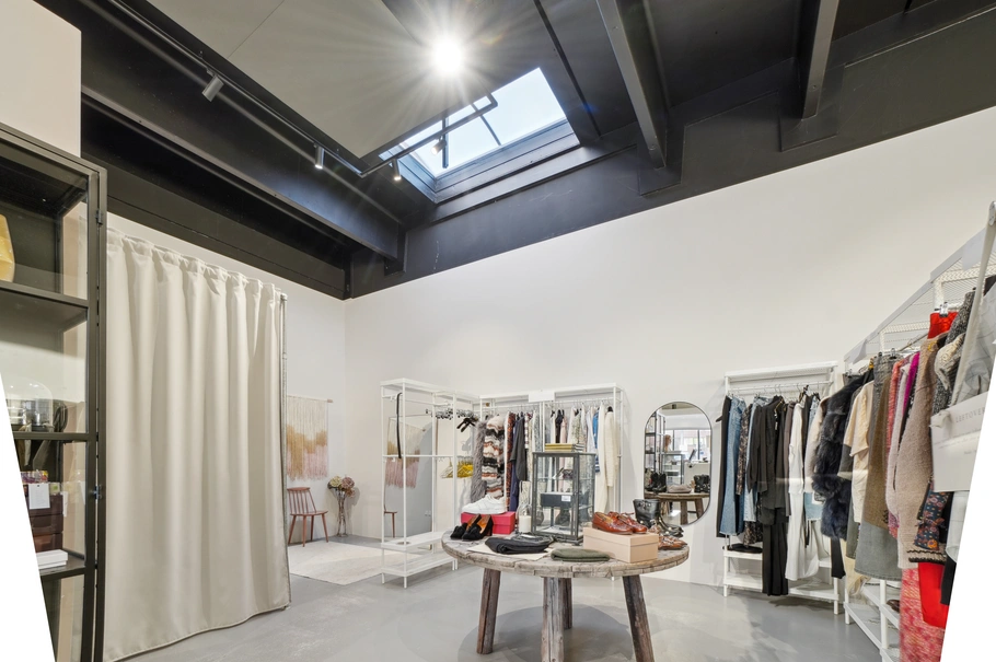 showroom eller tøjbutik. De store, åbne rum giver en fleksibilitet, der gør det nemt at tilpasse lokalet til forskellige typer af virksomheder.