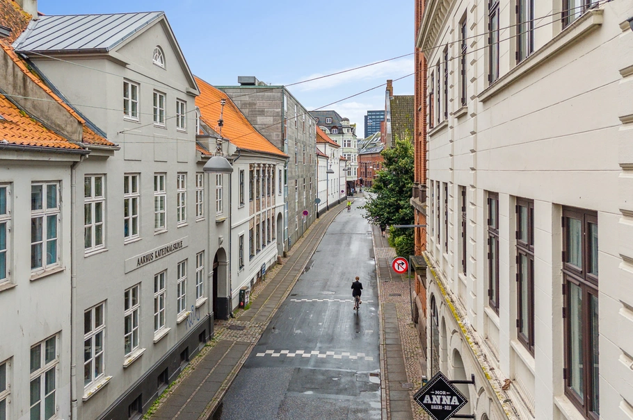 Restauranten er beliggende i den stemningsfulde Mejlgade og fordeler sig over to etager: parterre og stueetage.