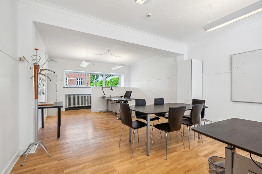 På denne rolige gade, lige midt i Aarhus, udlejer vi nu et fint og velholdt kontorlejemål på 120 kvm.