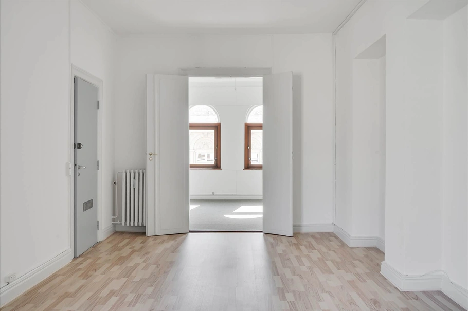 Lejemålet overtages nyistandsat, med behandlede gulve og hvidmalede vægge.