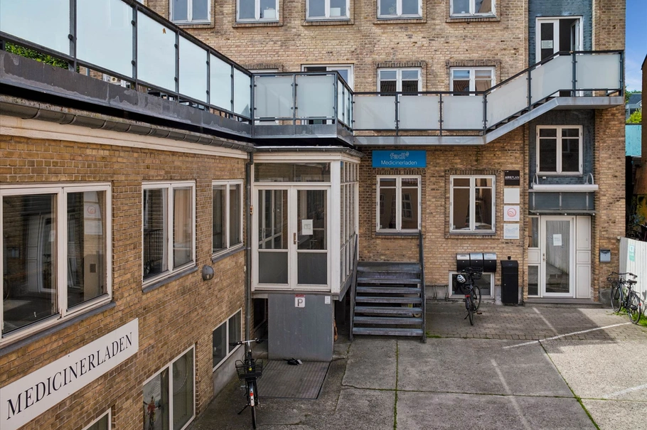 På denne beliggenhed midt i Aarhus, centralt men dog rolig beliggenhed, udbydes disse kontor/klinik lokaler på hhv. 140 og 334 m² nu til leje. Lejemålene fordeler sig på hver sin etage med egen indgang.