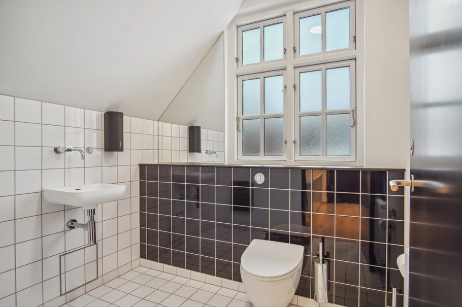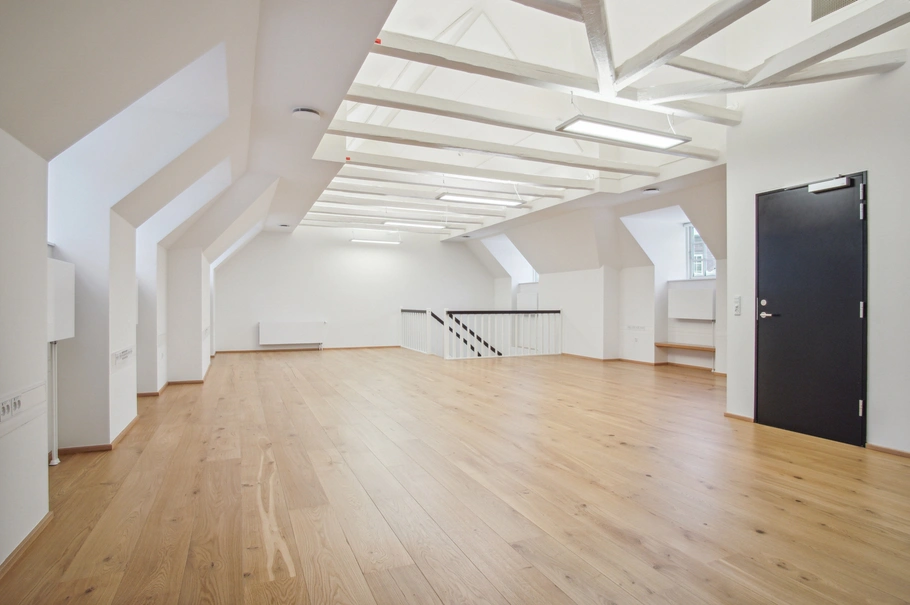Kontorlejemålene på 1. sal (233 m²) og 2. sal i to plan (226 m²) fremstår begge indflytningsklare til nye lejere.