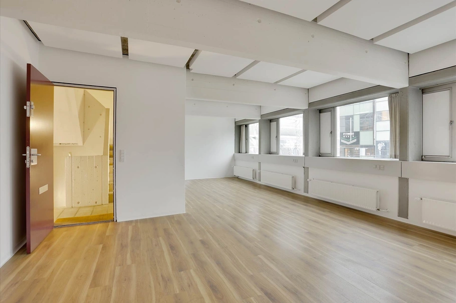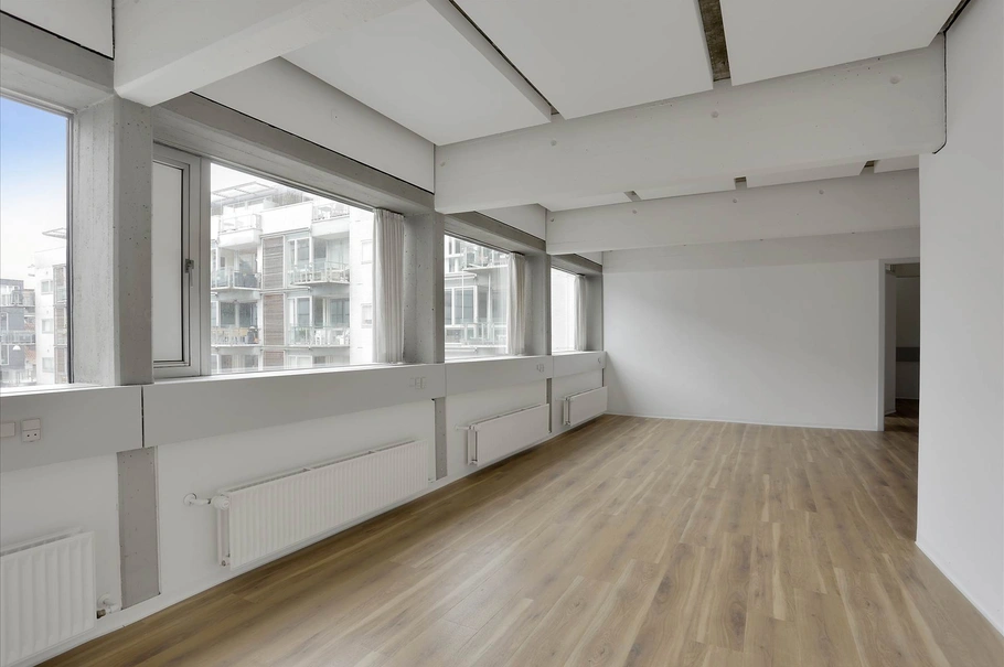 De 112 m² fordeler sig på et storrumskontor, kontor/mødelokale, et toilet og et køkken med plads til bespisning.