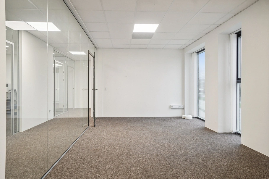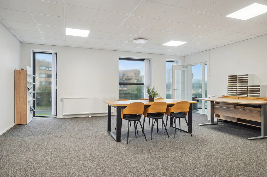 Her udlejer vi nu et moderne og indbydende kontorlejemål med et dejligt lysindfald og ventilation med køl. Med den nuværende indretning er der plads til ca. 15 arbejdspladser. Ønskes en anden indretning, er dette muligt efter nærmere aftale.