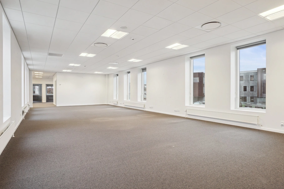 Kontorlejemålet er primært indrettet som et stort åbent kontorareal med enkelte