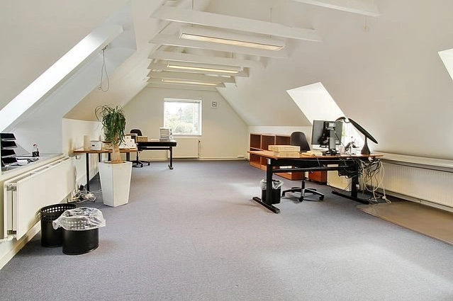 Lejemålet ligger på førstesalen oven på ét af landets mest kendte ejendomsmæglerkontorer, der er åbent 6 ud af ugens 7 dage, og skaber et naturligt liv i ejendommen. Med to store kviste og gavlvindue er enhver mulighed udnyttet til at skabe lækre, lyse omgivelser for arbejdspladsen. Der er yderligere mulighed for at leje opbevarings-/arkivplads i kælder etagen. På førstesalen findes også et separatkontor samt toiletfaciliteter.