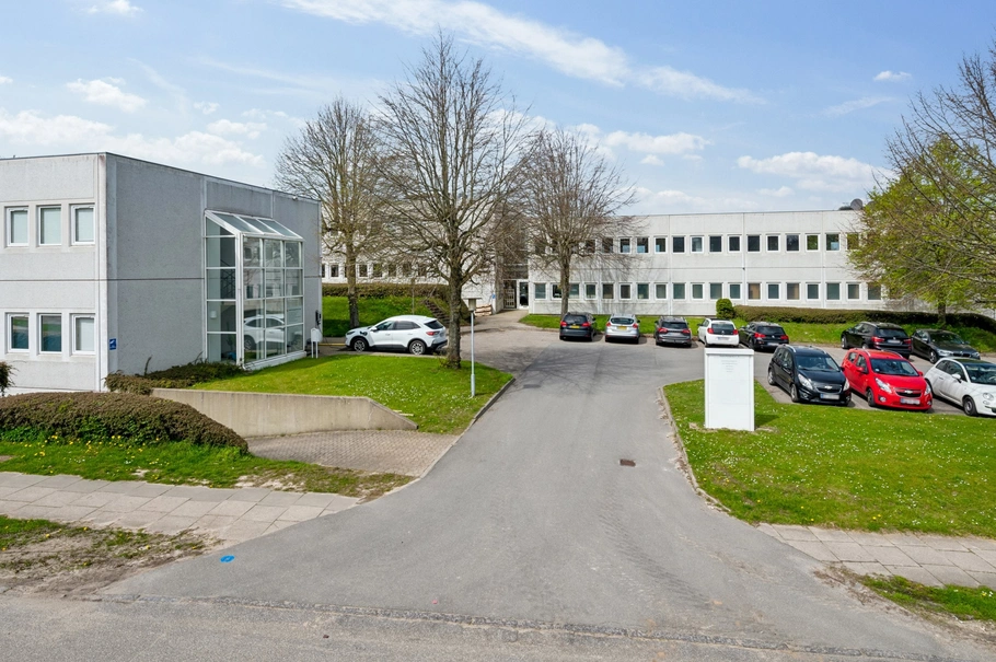 Ejendommen er beliggende højt i området, hvorfor man fra flere af kontorerne har en flot udsigt ud over byen.