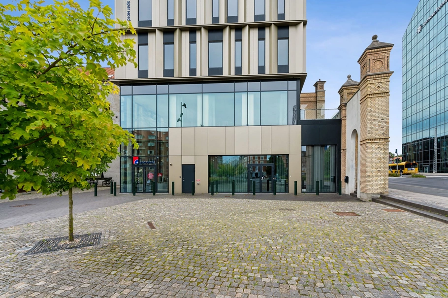 Indgang til lejemålet er fra Ceres Plaza - et nydeligt torv ud til Thorvaldsensgade og Silkeborgvej. Herfra bydes man velkommen i et indbydende ankomstområde. Man bemærker straks den helt ekstraordinære loftshøjde og den rå, industrielle stil med afrensede betonsøjler og -vægge, synlige installationer og ruminddelinger i glas. Akustikken er sikret med store Troldtekt-plader på loft og vægge.