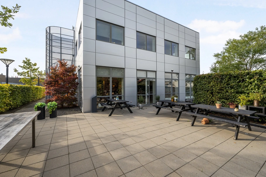 Ejendommens udenomsarealer er udlagt til parkering til kunder og personale. I 2024 er der blevet opsat 300 kW hurtigladere på ejendommen, som sikrer effektive lade-muligheder for medarbejdere og gæster.