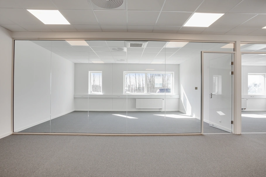 Kontoret er moderne indrettet med en god blanding af åbent storrum og enkelte lukkede kontorer, mødelokaler og samtalerum adskilt med glasvægge.