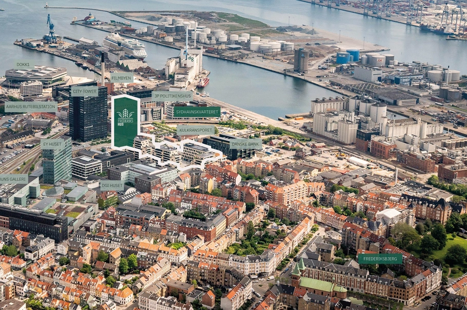 Med Frederiks Hus afrundes visionen for Frederiks Plads – og dermed fornyelsen af en del af Aarhus, der tidligere har været lukket og gemt. Området, der gennem godt 100 år har huset DSB’s Komponentværksted, bliver et grønt, urbant og mangfoldigt byrum, der forbinder boliger, erhverv, butikker og caféer – og samtidig er tæt forbundet med Aarhus og resten af verden.