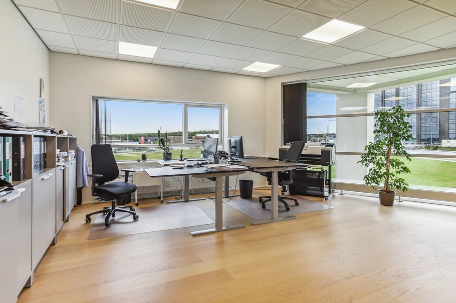 Lejemålet, som ligger på 1. sal, har et samlet areal på ca. 350 m². Lokalerne fremstår lyse og indbydende med pæne trægulve og et godt lysindfald. Indretningen kombinerer åbne kontormiljøer med mødelokaler/kontorer, en frokoststue og toiletforhold.