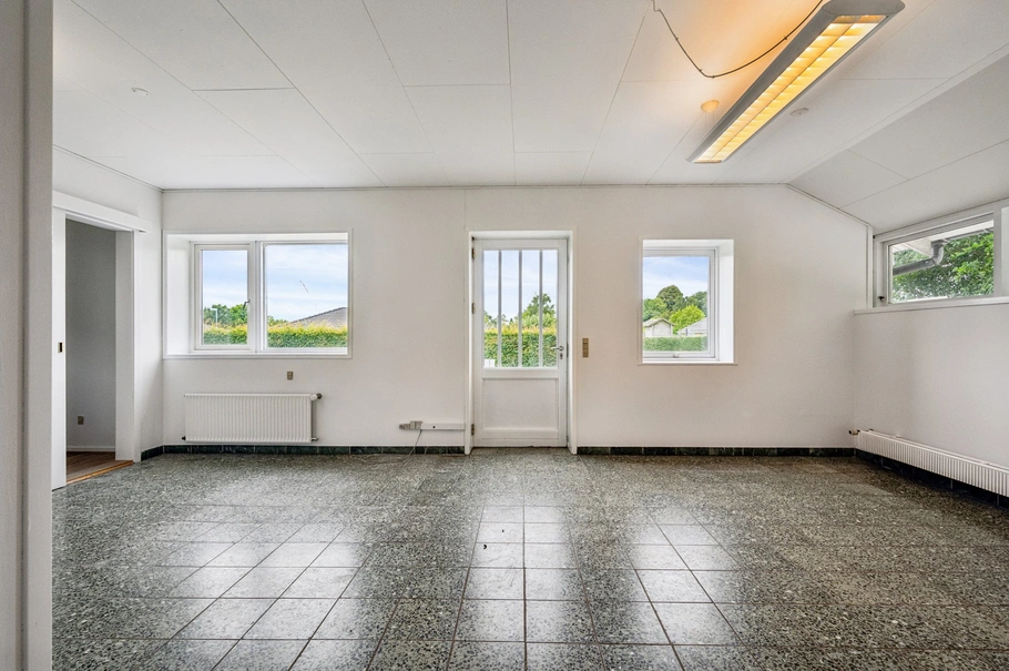 Ejendommen har parkeringspladser lige foran, hvilket gør det nemt og bekvemt for både jer og jeres kunder. Denne sjældne udlejningsmulighed i Beder tilbyder ikke blot en fantastisk plads, men også en enestående synlighed og tilgængelighed.