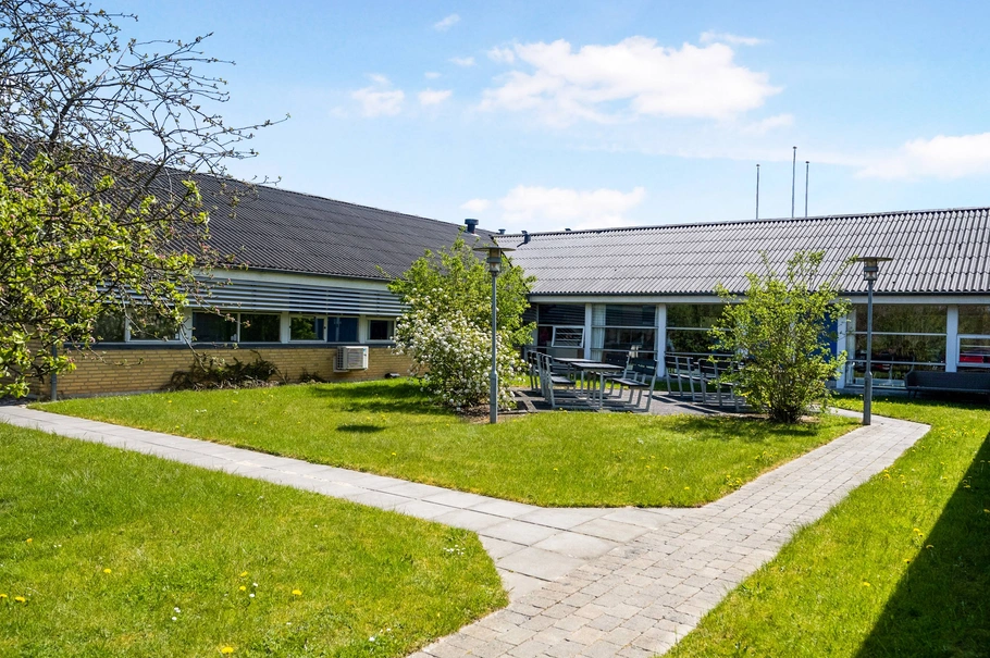 Selve Ejendommen er en solid gulstensejendom fra 1987 og med en tilbygning fra 1996.