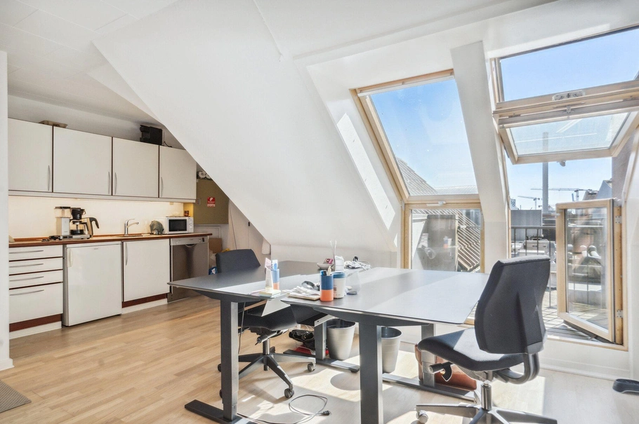 Lejemålet er samlet 87 m² og byder på en funktionel og indbydende indretning, der egner sig perfekt til en bred vifte af erhvervsaktiviteter. Det består af et større åbent rum, som giver masser af muligheder for fleksibel indretning, samt et større kontor/mindre mødelokale.
