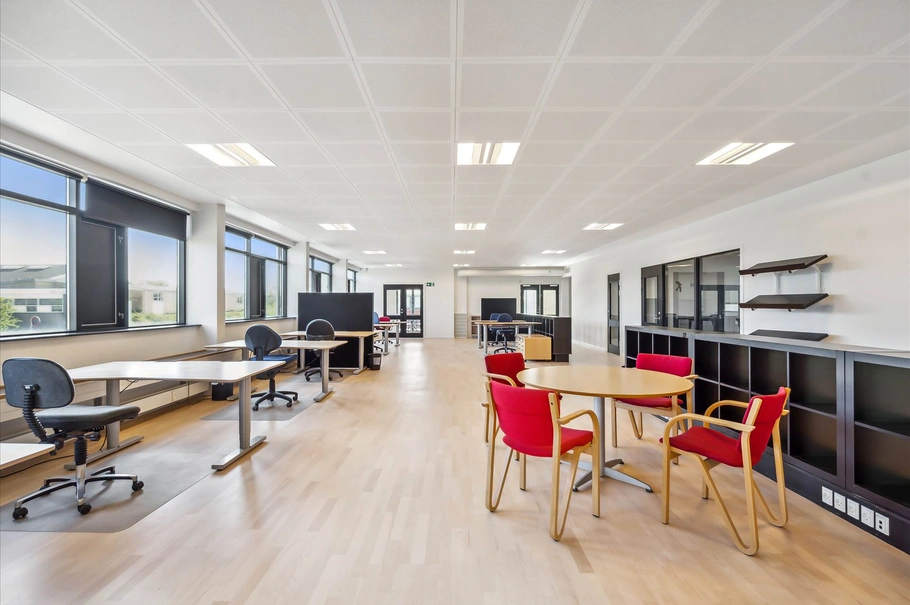 Lejemålet er velindrettet med et lyst storrumskontor, hvorfra der er direkte adgang til lejemålets private terrasse. Derudover er lejemålet indrettet med tre kontorer i forskellige størrelser, samt to gode mødelokaler ligeledes i forskellige størrelser. Lejemålet er derved fleksibel indrettet, hvorved kommende lejer kan indrette lejemålet efter virksomhedens behov. Til lejemålet forefindes et køkken med tilhørende opvaskemaskine, kogeplader og køleskab. Der er fællestoiletter på gangen tæt placeret på lejemålet. I ejendommen er installeret elevator.