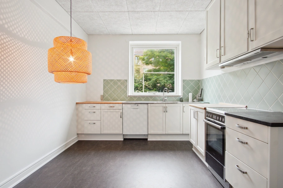 Der er to toiletter i hver sin ende af lejemålet samt baderum med to brusestationer. Køkkenet er af nyere dato med ovn og opvaskemaskine. Der er ingen parkeringspladser inkluderet i lejemålet. Der er dog gode parkeringsmuligheder på Rødkløvervej og de omkringliggende sideveje, hvor det i hverdagstimerne ofte er muligt at parkere gratis.