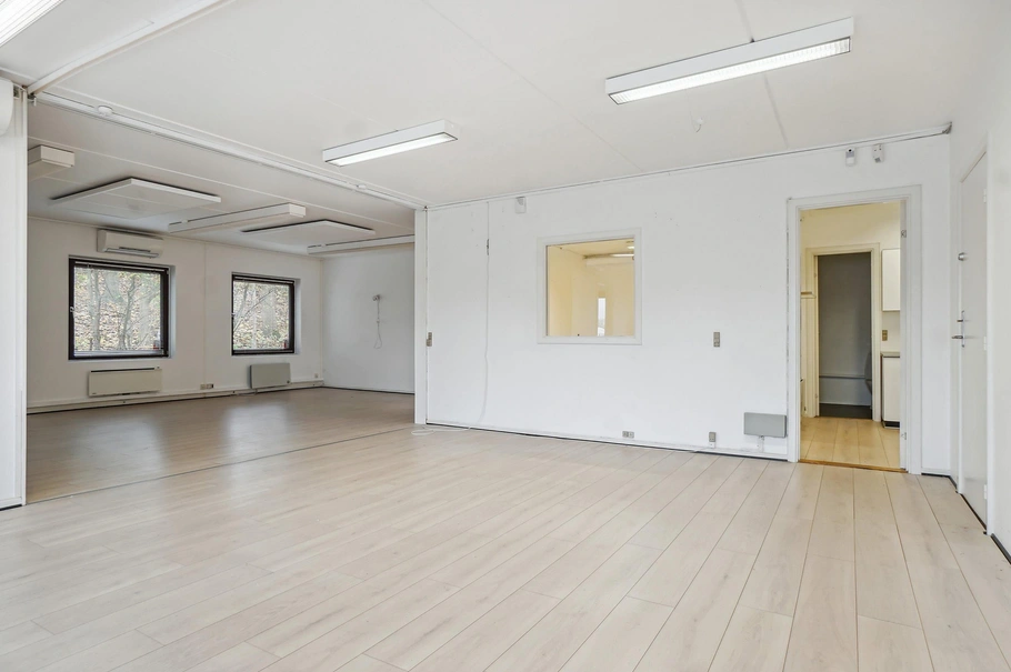 Det samlede areal er på 142 m² og indretningen byder på kontorer af varierende størrelse, storrumskontor, the-køkken og toilet. Lejemålet er forsynet med flere luft til luftanlæg med varme og kølefunktion.