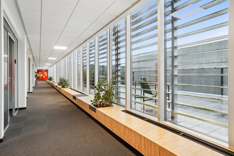 Lejemålet ligger på 2. sal og er indrettet med en god blanding af cellekontorer/møderum og åbne kontormiljøer. Der er seks toiletter, garderobe, tekøkken og serverrum. Gulve er tæppebelagte, og lofter er nedhængte med indbygget LED. Fra lejemålet er der udgang til en fantastisk dejlig tagterrasse.
