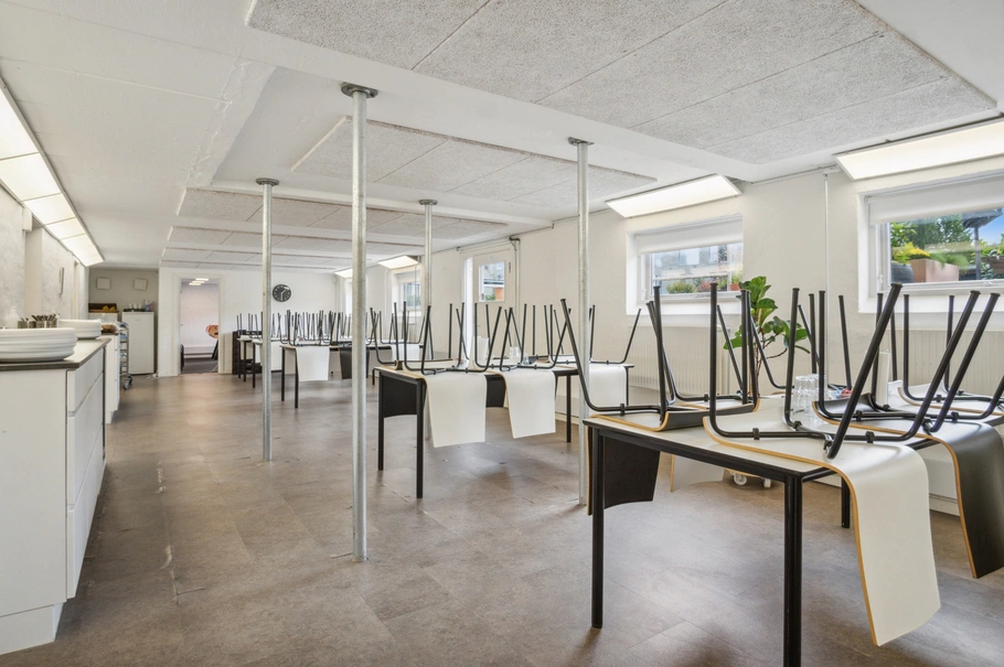 Lejemålet ligger i ejendommens underetage og har et godt lysindfald fra ejendommens parkeringsgård. Her er et stort rum, som tidligere har været benyttet til kantine med tilhørende køkken, toiletter, bad og et lagerrum.