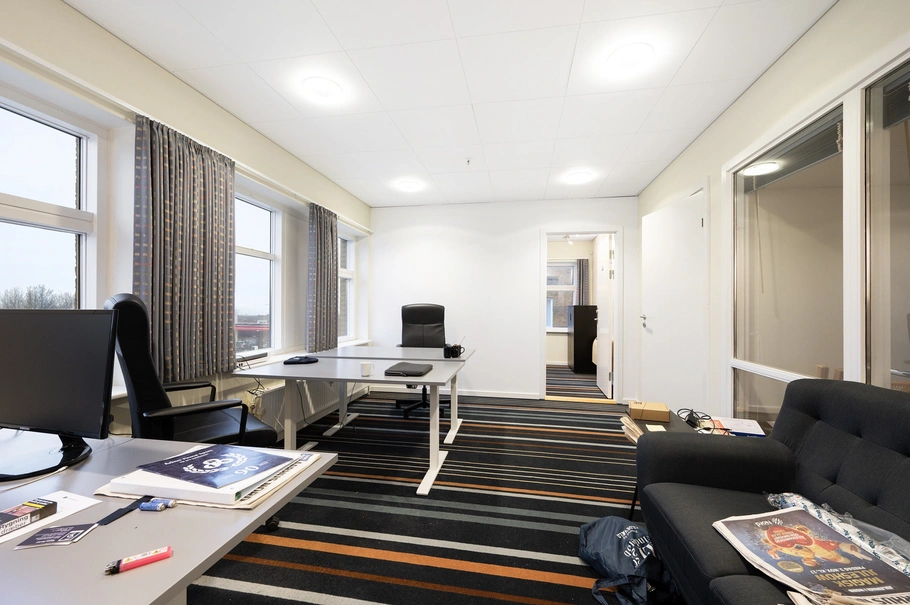 - Indrettet med 3 kontorer og en stor frokoststue