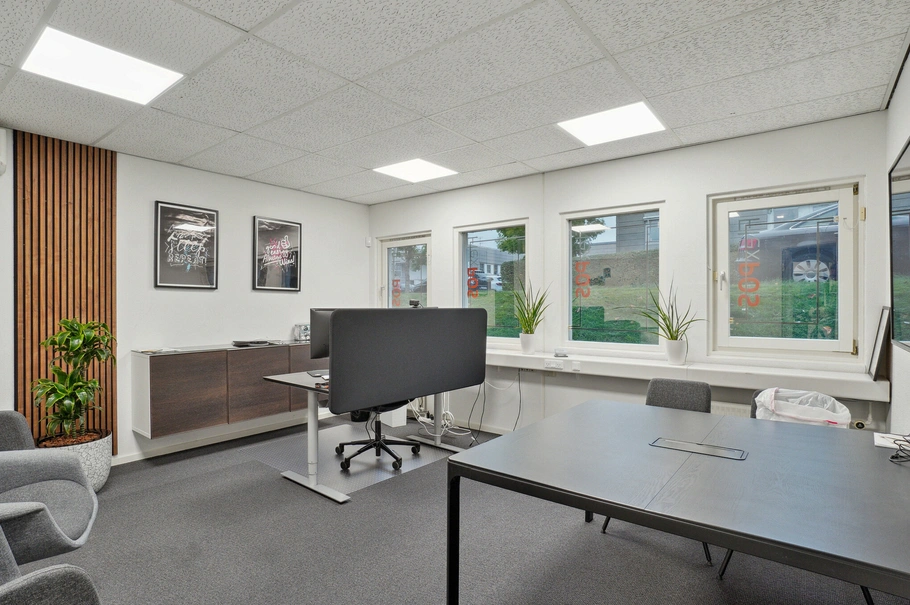 Lejemålet er fordelt med en god kombination af storrumskontor og mødelokaler/cellekontorer. Ligesom der forefindes en stor rummelig frokoststue med dejligt kig til åbne vidder.