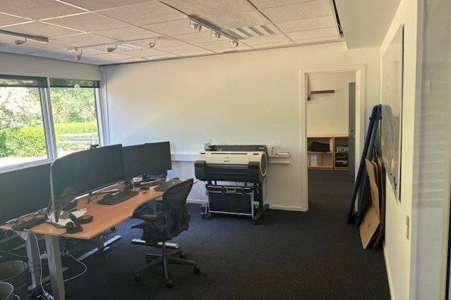 Kontorlokaler i flere størrelser fra 15-120 m2. med fleksibel indretning. Bygningen indeholder et større fællesareal med mødelokale, bordtennis, kantine og toiletter. Udenomsareal bestående af fine grønne omgivelser med udgang via terrasse dør. Adgang til fælles portrum og læsserampe. Mulighed for leje af lagerplads.