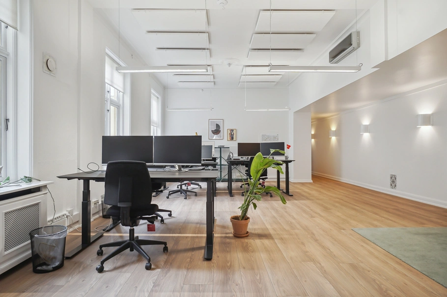 Lokalerne byder på en optimal indretning med åbent kontormiljø og mindre kontorer/mødelokaler.
