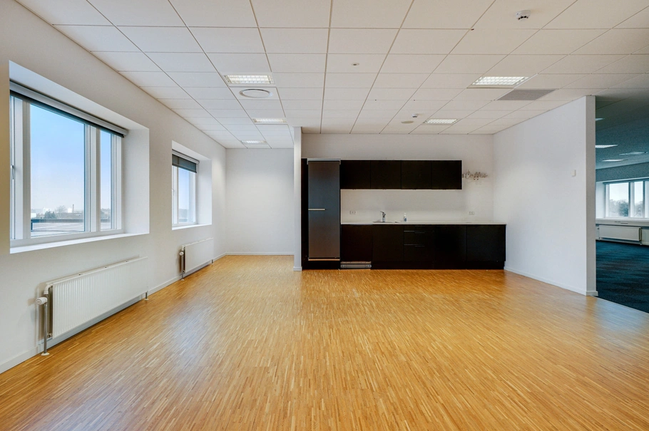 Lejemålet består af et stort åbent kontorareal, tre pæne toiletter, et åbent tekøkken og tre gode mødelokaler/kontorer med glasvæg. Lejemålet kan sammenlægges med 2. salen, som er 587 m².