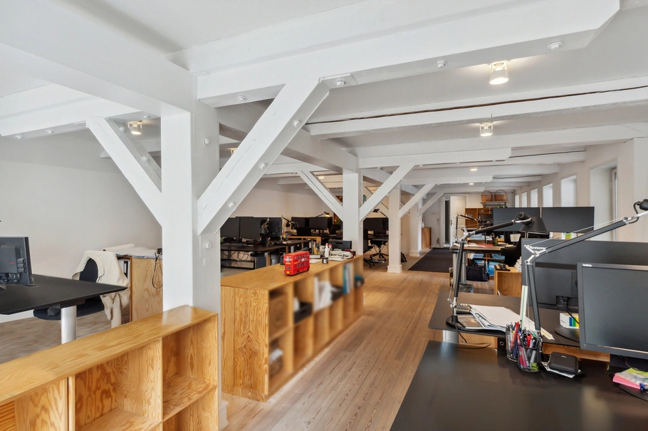 Dette kontorlejemål ligger i det centrale Aarhus, omgivet af charmerende ejendomme fra den ældre bygningsmasse.