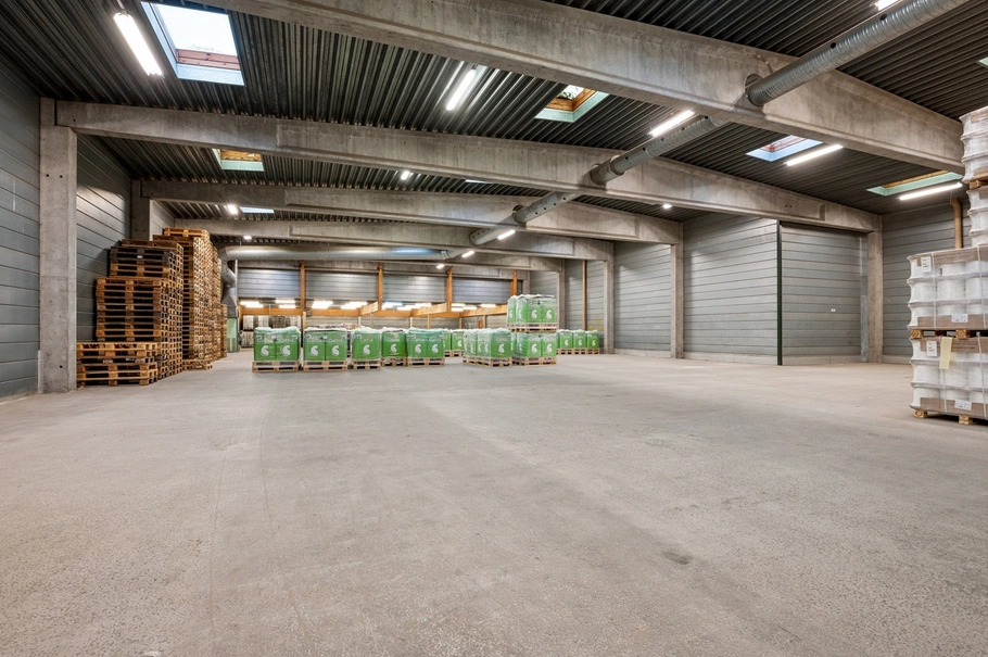 De tre haller byder på en varierende loftshøjde på op til ca. 4,5 meter under dragerne og knap 5,5 meter under loftet. Begge haller er udstyret med ramper til lastbil, ligesom der kan etableres niveaufri adgang efter aftale. Lageret på ca. 2.200 m² har en solid bæreevne qua betongulvet, og de mange ovenlysvinduer sikrer et fremragende naturligt lysindfald. Ejendommens tag er fladt og belagt med tagpap.