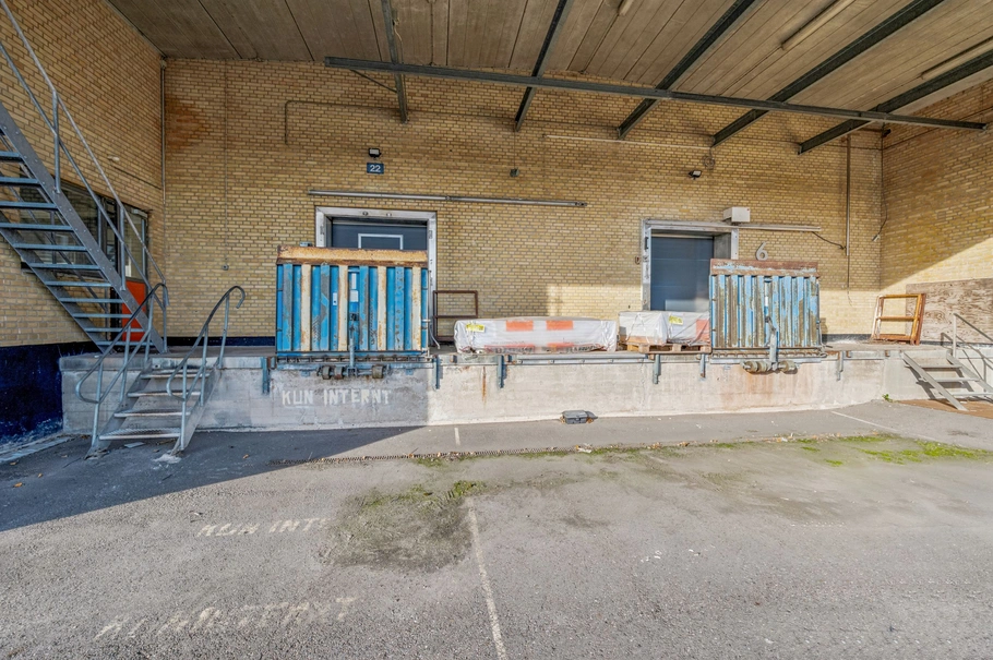 Lejemålet, som entreres via ejendommens nordøstlige facade, består af ca. 540 m² regulært lager med en loftshøjde på ca. 4 meter til dragerne og ca. 5.5 meter til loftet. Der er adgang til lejemålet gennem 2 porte med ramper til plateau som skaber niveaufri adgang for f.eks. lastbiler eller varevogne. Foran lejemålet findes adskillige vederlagsfri parkeringspladser, ligesom det er muligt at leje oplagsplads efter nærmere aftale.
