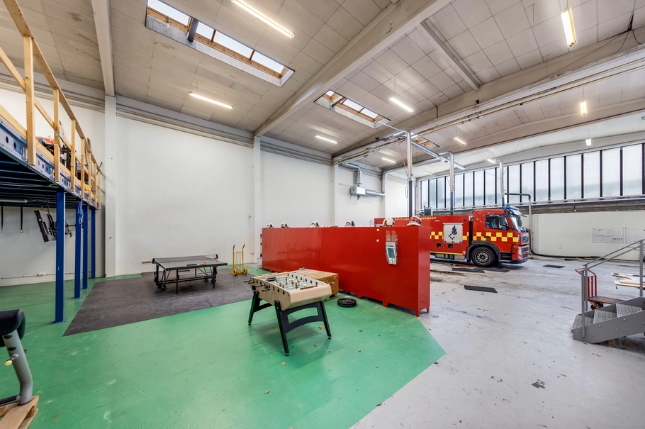 Lageret udgør 1.871 m2 og fordeler sig på to store haller med en loftshøjde på 7 meter under spær. Begge haller har porte i hver ende og kan nemt tilgås af både varevogne og lastbiler. Fra den ene port er der direkte adgang til Søren Nymarks Vej.