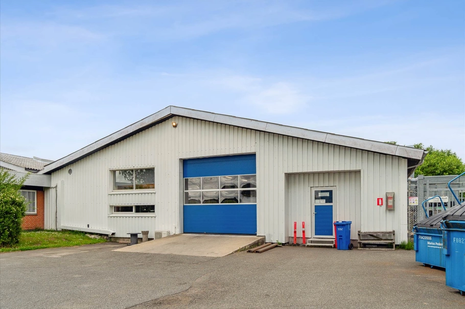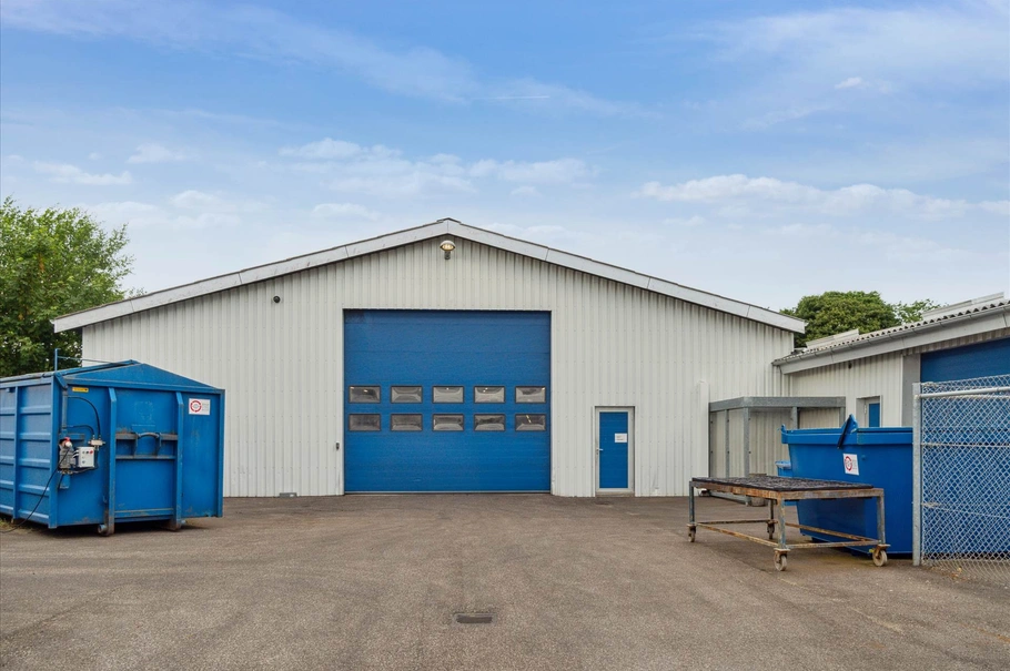 Udenomsarealerne på den 8.466 m² store matrikel er belagt med sf-sten eller asfalt, hvilket sikre en god oplagsplads. Det bemærkes at hallerne indhegnet.