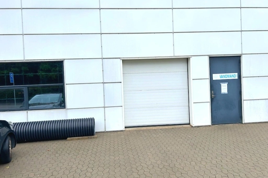 Lejemålet består af 591 m2 flot højloftet lager med ovenlys og port adgang. Det er opvarmet og isoleret.