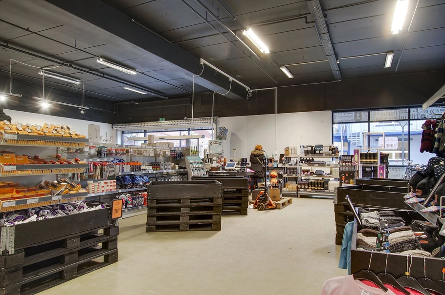 Butikslokalet er indrettet delvist med lyst betongulv og lyse klinker, hvide vægge og højt til loftet, hvilket bevirker en god rummelighed i butikken. I forbindelse med butikkens salgsareal er der direkte forbindelse til personalefaciliteter, herunder toilet, kantine samt disponibelt rum.