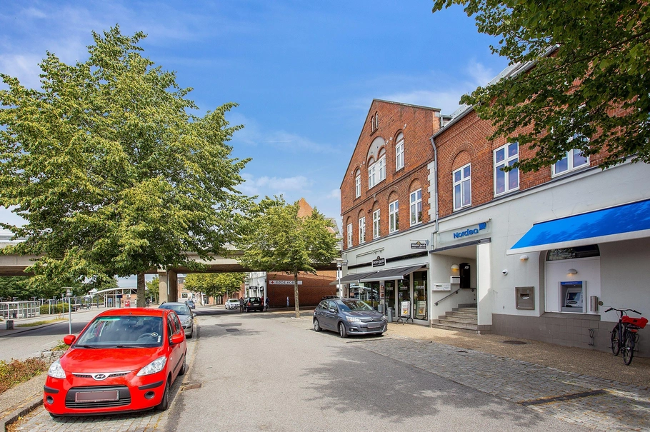 Der findes i området særdeles gode parkeringsmuligheder og offentlige transportmuligheder, da banegården ligger overfor ejendommen.
