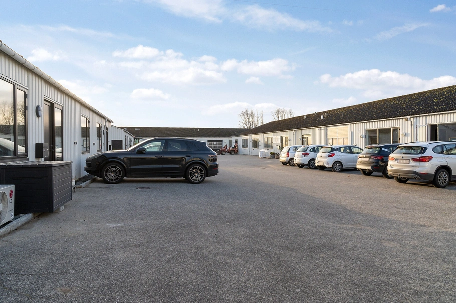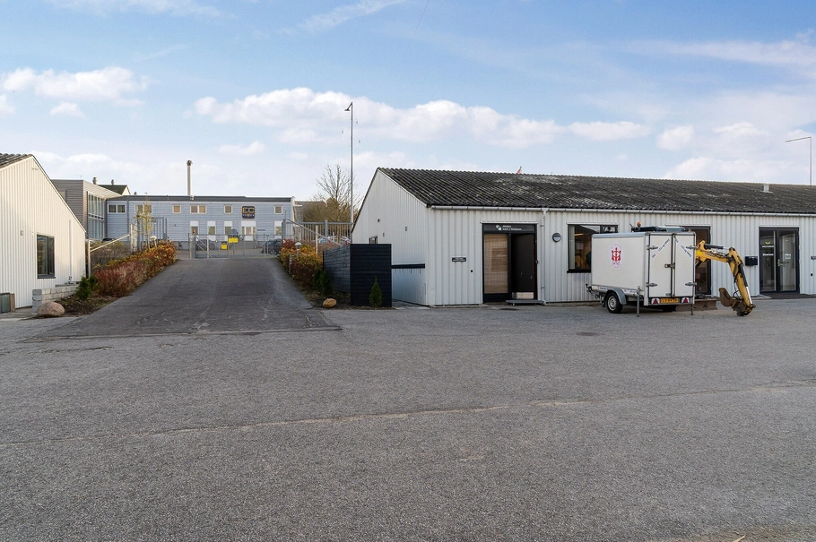 Handelsdomicil beliggende i Hinnerup med synlig facade til den trafikerede Århusvej udlejes samlet eller hver for sig. Lejemålene er ideelle for den lagerførende webshop/handelsvirksomhed, der vægter nærhed til motorvejen højt, eller til brug som firmadomicil for en virksomhed, der udøver lettere industri- eller værkstedsvirksomhed.