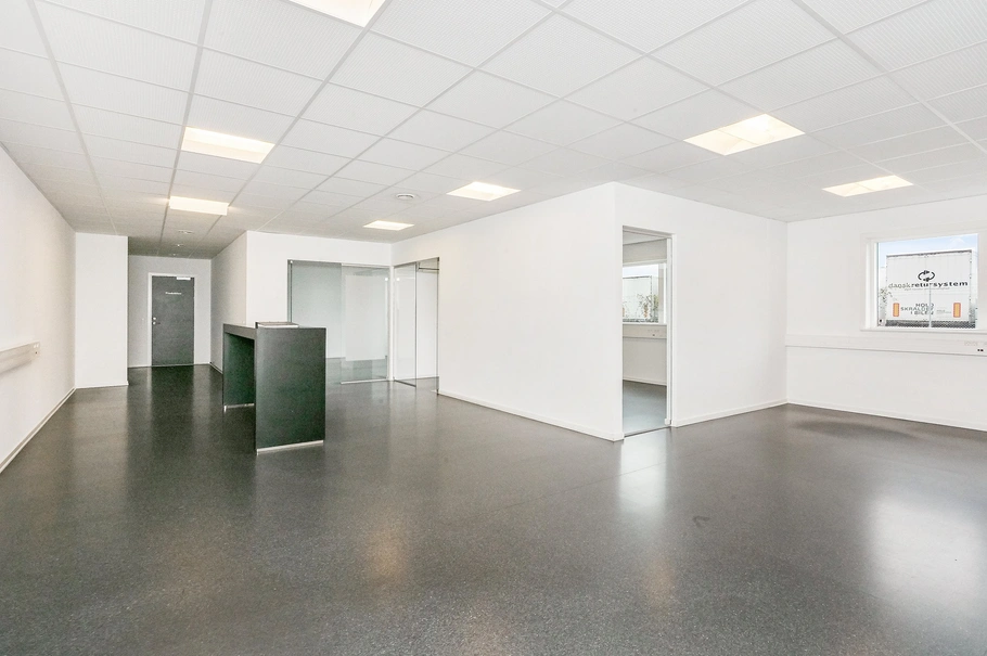 Kontordelen i bygningen er indrettet med lokaler, som både kan benyttes til kontor og mødelokaler. Derudover er der velfærd med køkkenfaciliteter og toiletter.