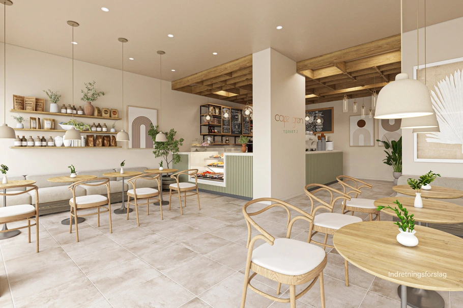 Lejemålet består af ca. 130 m² butik og ca. 20 m² personalerum i stueplan, hvortil kommer ca. 150 m² kælder.