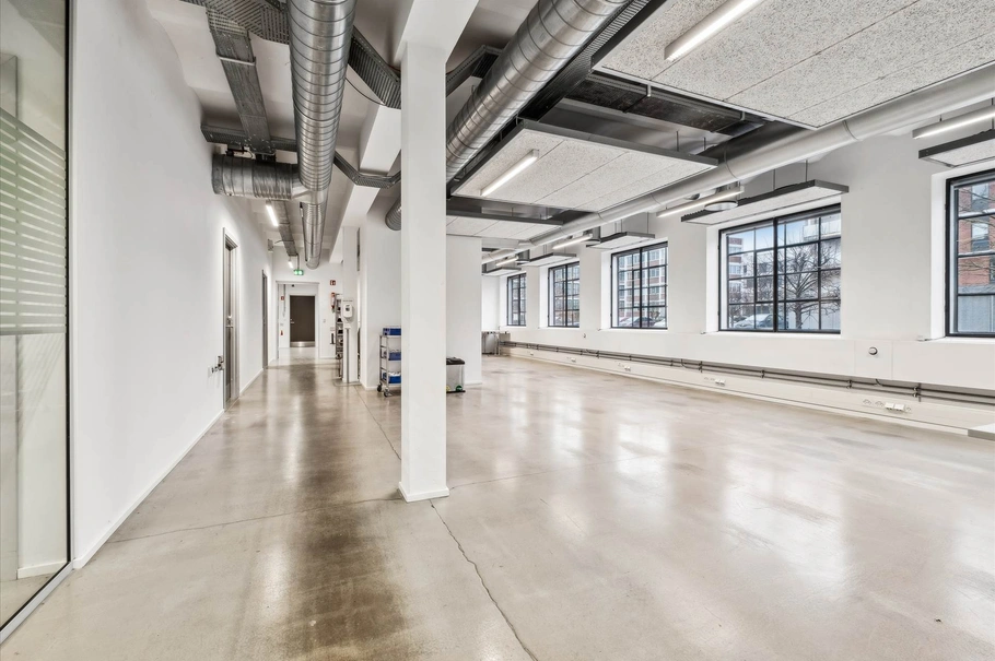 Lejemålet på 330 m² er placeret lige til venstre for hovedindgangen og har tidligere fungeret som kantine. Lokalet er oplagt til kontorbrug med en fleksibel planløsning, moderne faciliteter og et fint lysindfald. Inden overtagelsen nyistandsættes lejemålet med ny gulvbelægning, toilet samt tekøkken efter aftale med lejeren.