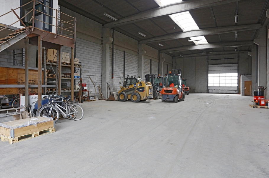 423 m² højloftet lagerhal. Opført i 1986 i betonsten. Hallen er isoleret, men uopvarmet. Reel hal med gode port i begge gavle. Der er etableret mandskabsrum i hallen (Der er ikke indlagt vand).