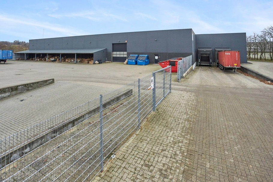 Der er indhegnet udenomsareal ved hallen, ligesom der forefindes ca. 150 m² overdækning.