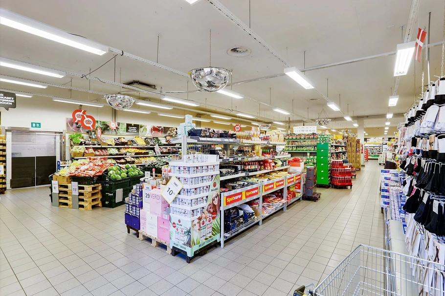 Ejendommen er en traditionel dagligvarebutik opført i mursten med pudset gul facade. Fra et vindfang mod Østerbrogade entreres salgsarealet, hvorfra der er adgang til baglokale, kontor samt kølerumsfaciliteter. Herfra er der adgang til 1. sal, hvor butikkens teknikrum samt personalefaciliteter er beliggende. Disse består i frokoststue, kontor, toilet samt omklædning.